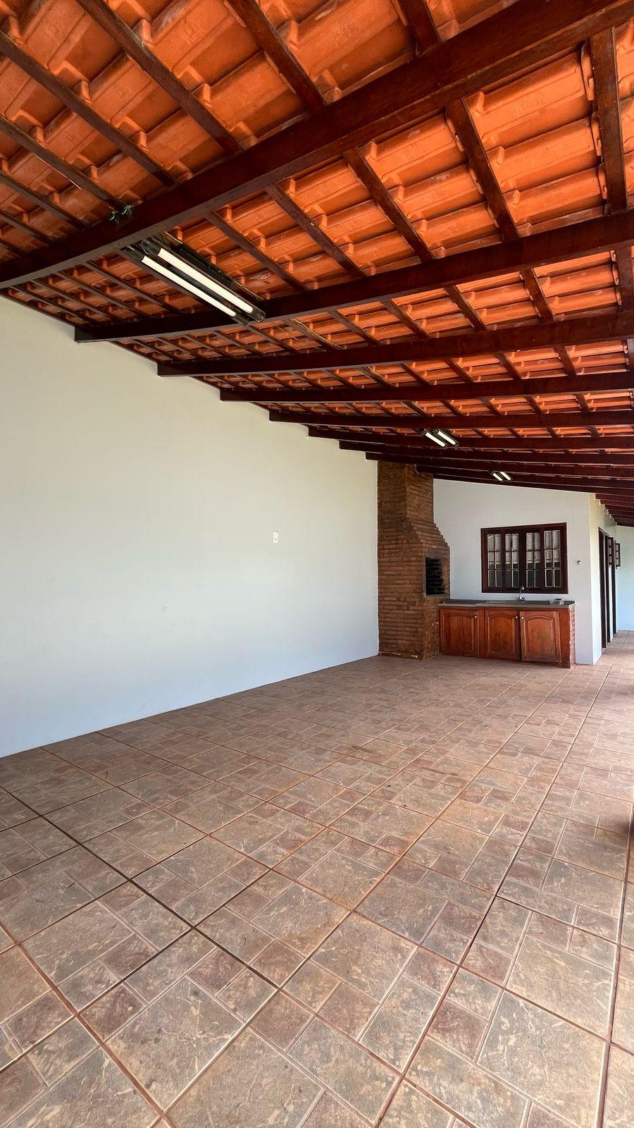 Edícula com churrasqueira e mesa de madeira