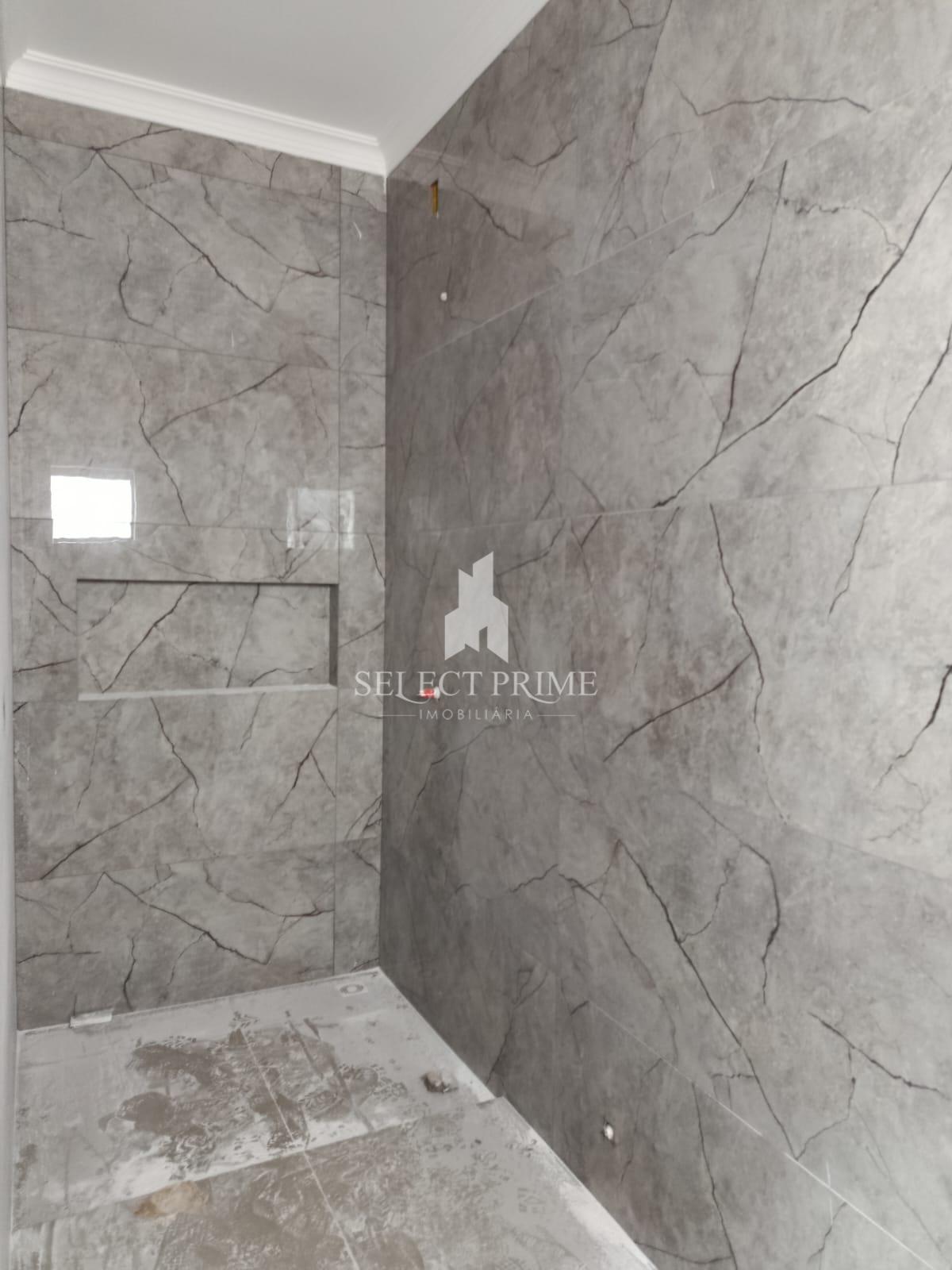 Acabamento com porcelanato, gesso rebaixado, iluminação em LED