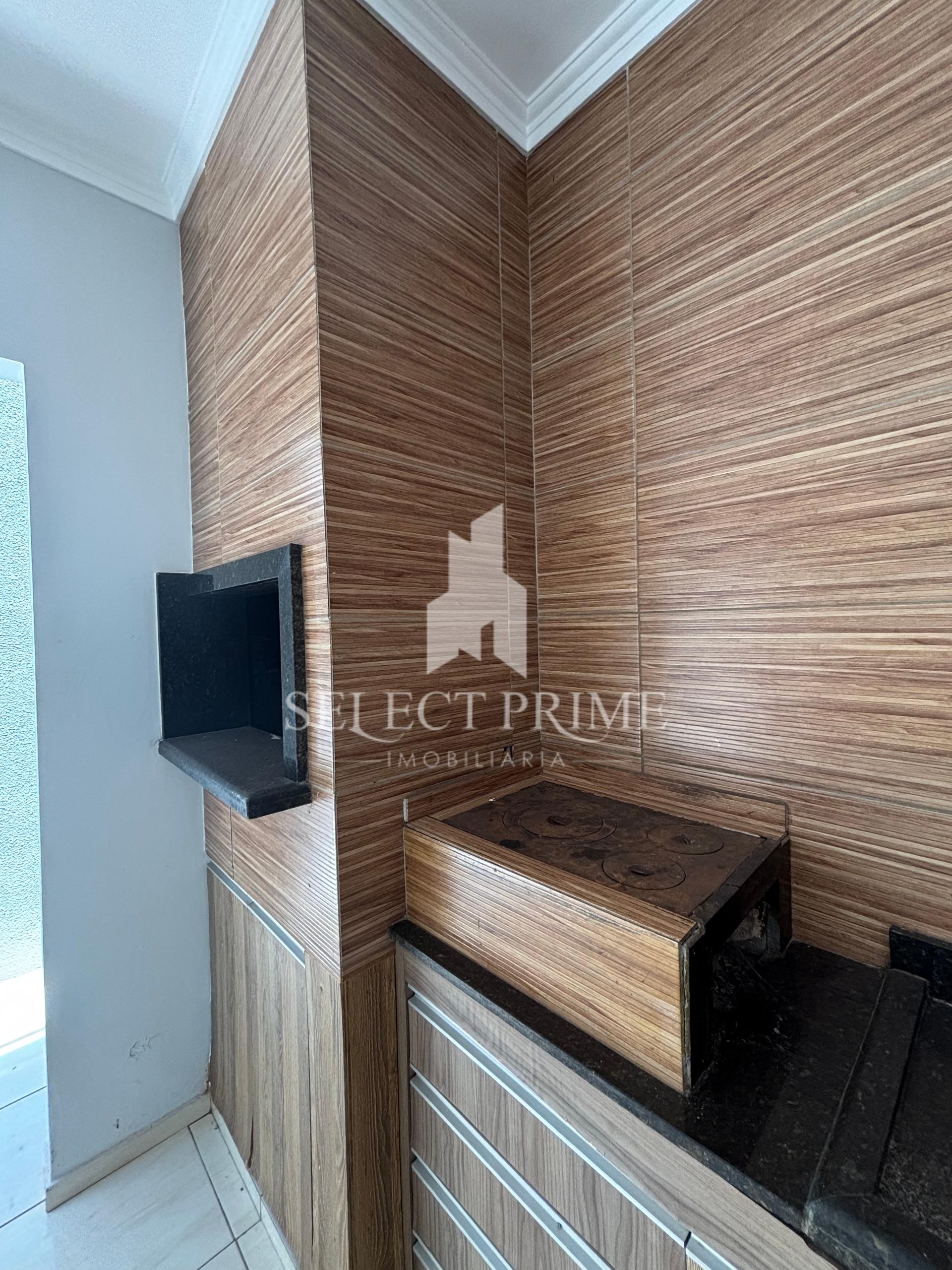 Churrasqueira, fogão a lenha, banheiro e depósito.